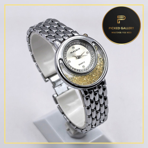 ساعت عقربه ای زنانه طلایی نقره ای بند استیلناموجود