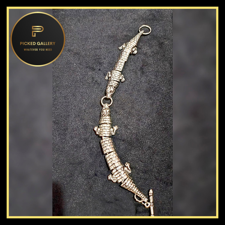 این دستبند خاص با طرح تمساح، یک اکسسوری فوقالعاده جذاب و منحصربهفرد است که جلوهای لوکس و متفاوت به استایل شما میبخشد. طراحی سهبعدی تمساحها با جزئیات دقیق و ظریف، آن را به یک انتخاب خاص برای افرادی با سلیقه جسورانه و متفاوت تبدیل کرده است.