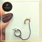 حلقه نقرهای: حلقهای نقرهایرنگ با زنجیری مشکی که به حلقه طلایی متصل شده است. ترکیب دو رنگ طلا و نقره به همراه زنجیر مشکی، تضادی زیبا و چشمنواز ایجاد کرده است.