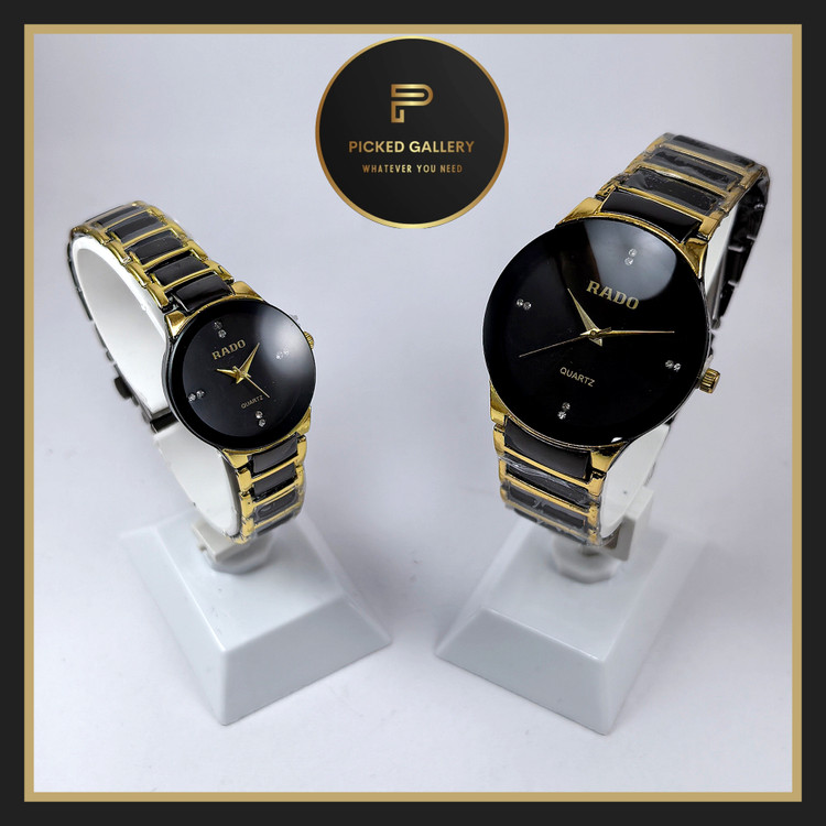 ساعتهای مچی همیشه جزو اکسسوریهای محبوبی بودهاند که علاوه بر نمایش زمان، تأثیر زیادی در استایل و جذابیت ظاهری دارند. تصویر ارائهشده، یک ست ساعت مردانه و زنانه از برند RADO را نشان میدهد که با طراحی خاص، ترکیب رنگ مشکی و طلایی و سبک مینیمالیستی، زیبایی و کلاس را در کنار هم ارائه میدهد.